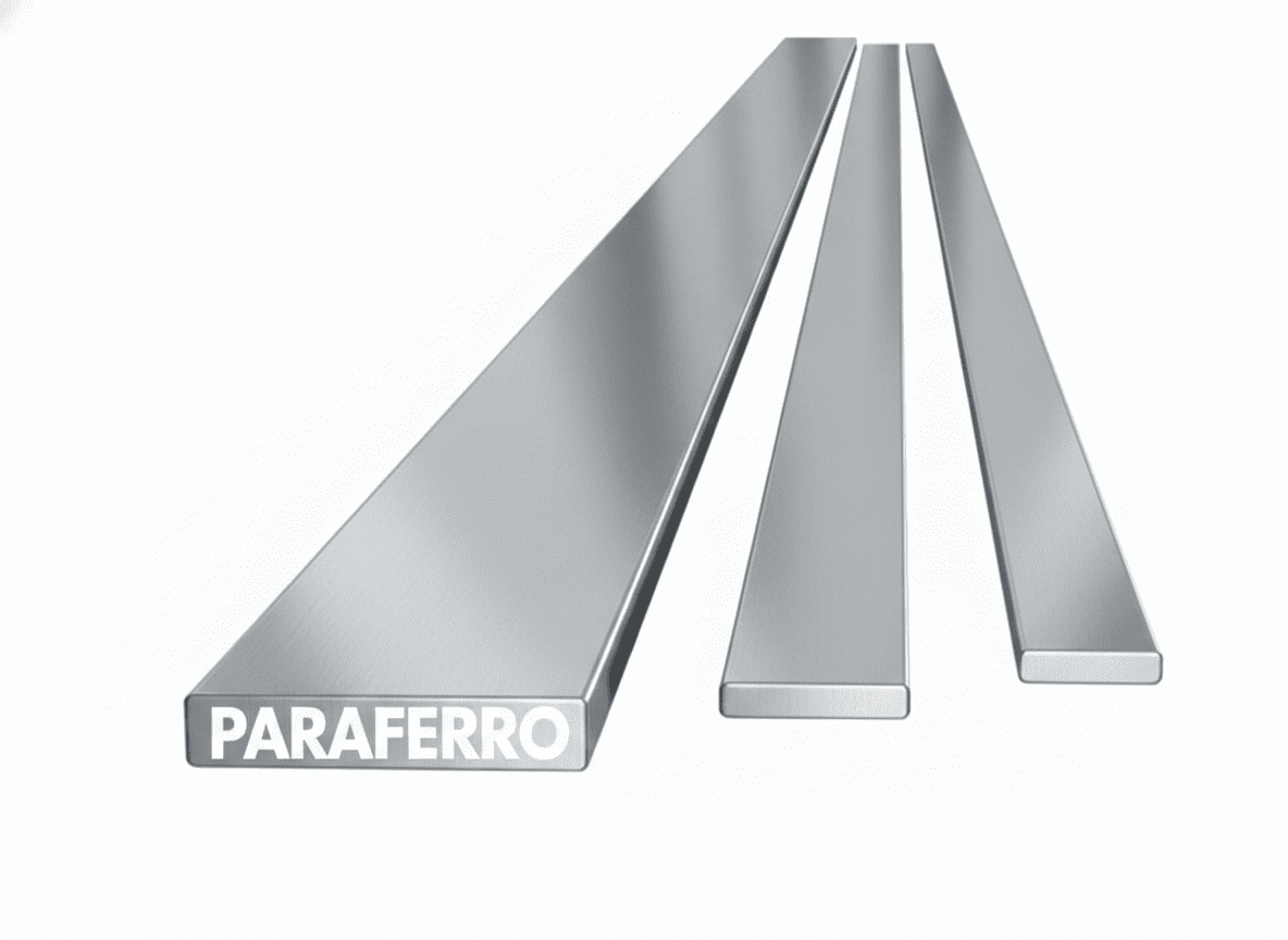 A barra chata (seção retangular) é o “elemento de ligação” universal da engenharia. Sua geometria plana oferece grandes áreas superficiais para soldagem e furação, tornando-a indispensável para a união de outros perfis estruturais, fabricação de chassis e suporte de cargas.